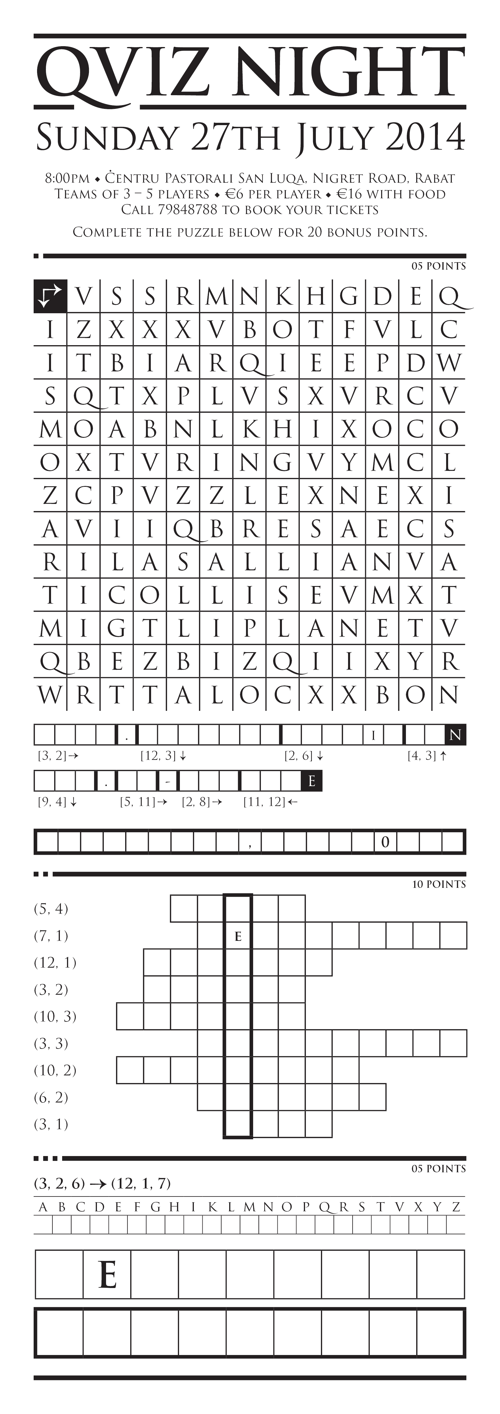 (The second one requires you to actually visit somewhere, so unless you’re in Malta I’m afraid you won’t be able to solve that fully.)